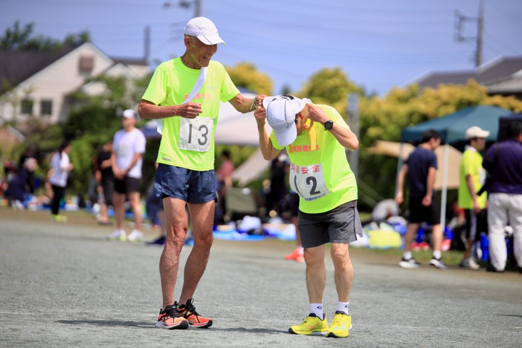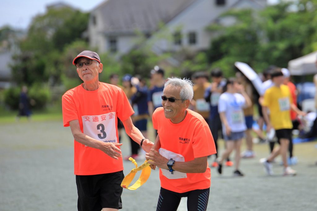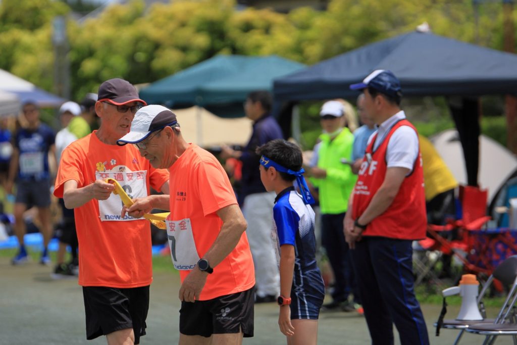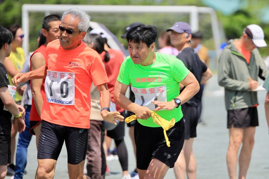 さて気を取り直してわたくし入沢からの襷を受けた関さんなんと今回も3回目の出撃です凄いの一言、襷を渡されたのは会長の岡田さんやる気満ち溢れるお顔がんばれ〜