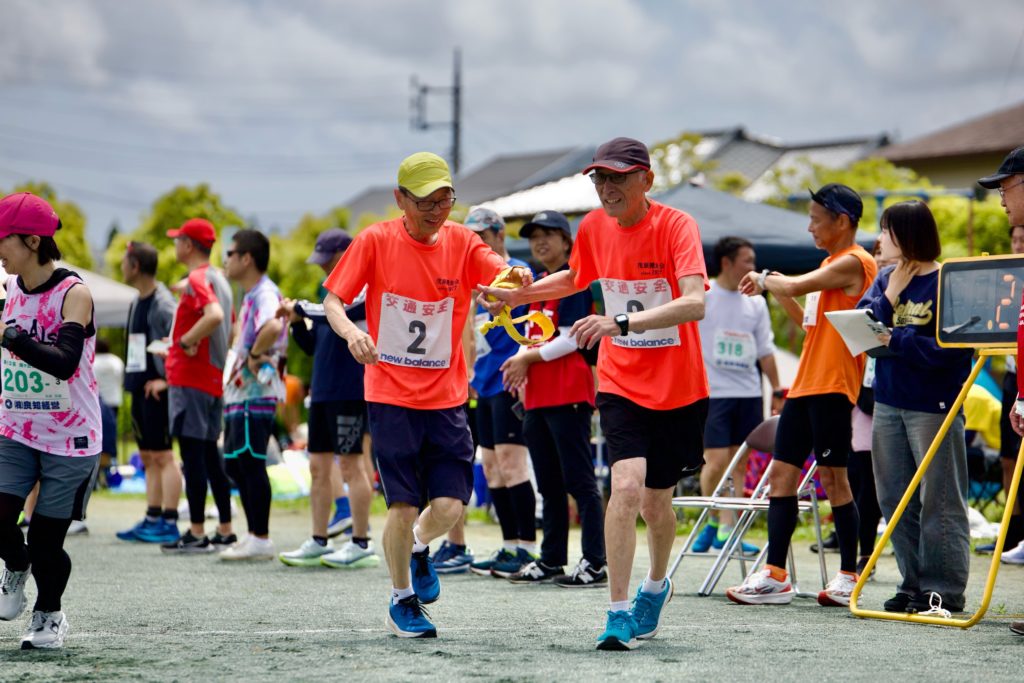 順調に襷が渡されていきます、次のランナーは急遽出場の松田さん行ってらっしゃい